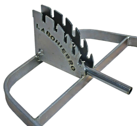 Built from heavy-duty steel, the adjustable cross frame securely holds meat in place while it cooks vertically beside the fire. The adjustable clamps allow you to position different cuts firmly, ensuring even roasting and perfect results every time. The stable base keeps the asador upright, while the top handle allows for easy positioning and rotation during cooking.